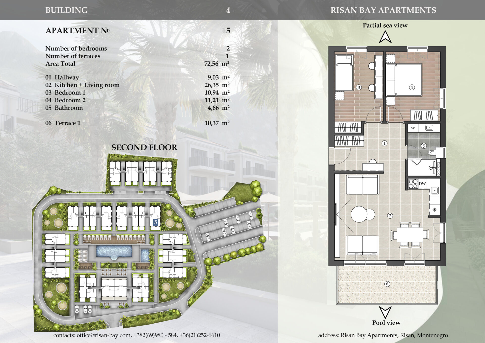 We bring to your attention cozy apartments, which are located in the Bay of Kotor, on the coast of the city of Risan. A modern residential complex, which was commissioned in anticipation in 2023 and built according to public, and most importantly, environmental European standards, is provided with absolutely all high-quality cozy houses / apartments, both for the summer vacation period and for permanent residence.